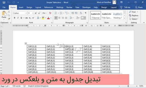 تبدیل جدول به متن و بلعکس در ورد Word